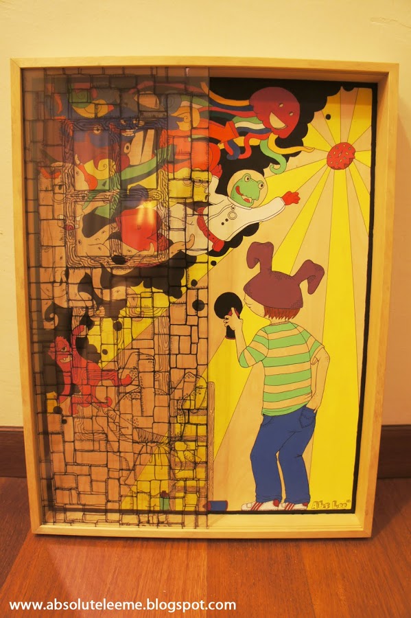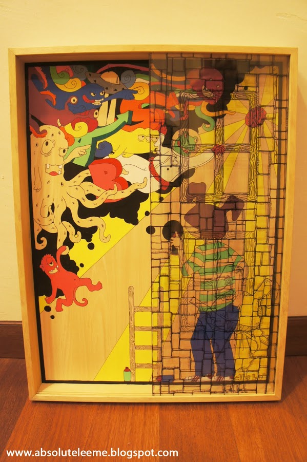 MEDIUM : ACRYLIC & INK ON WOOD PANEL WITH 2ND LAYER ACRYLIC PLASTIC ON